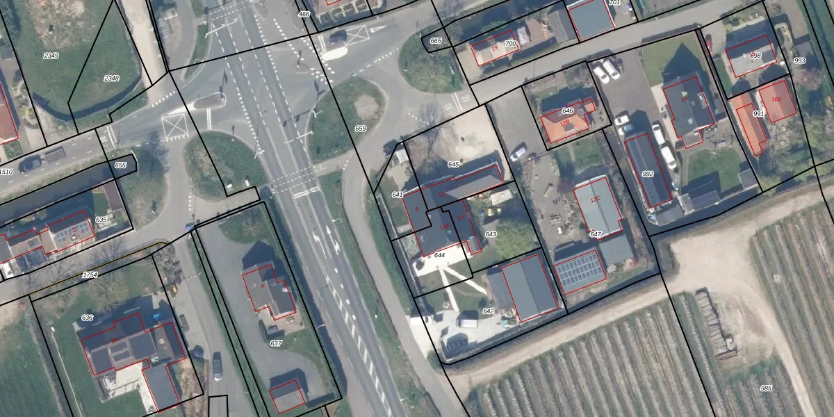Het adres is gelegen op perceel 641 in de sectie F en de kadastrale gemeente Lopik. De kadastrale aanduiding is aldus LPK00-F-641. Het perceel is 185 m² groot. Dat is kleiner dan de gemiddelde perceeloppervlakte in Lopik, dat op 1,1 ha ligt. De grootste perceeloppervlakte in de kadastrale gemeente is 33,7 ha. De kleinste oppervlakte bedraagt 0 m². Dit is het enige adres dat aanwezig is op het perceel. De huidige grenzen van het perceel zijn digitaal in de Basisregistratie Kadaster (BRK) geregistreerd op 17-03-2011.