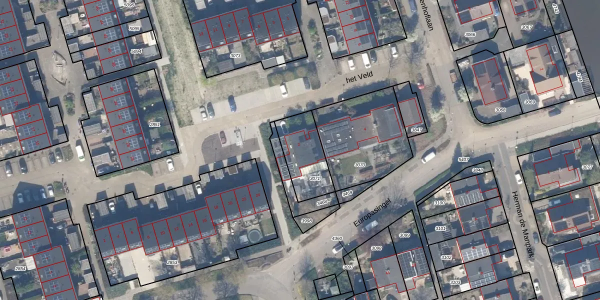 het Veld 2 is gelegen op kadastraal perceel JVD00B3071. Deze kadastrale aanduiding is uniek en wordt gebruikt door het Kadaster om eigendomsrechten en andere zakelijke rechten vast te leggen. Het perceel maakt onderdeel uit van de kadastrale gemeente Jaarsveld.