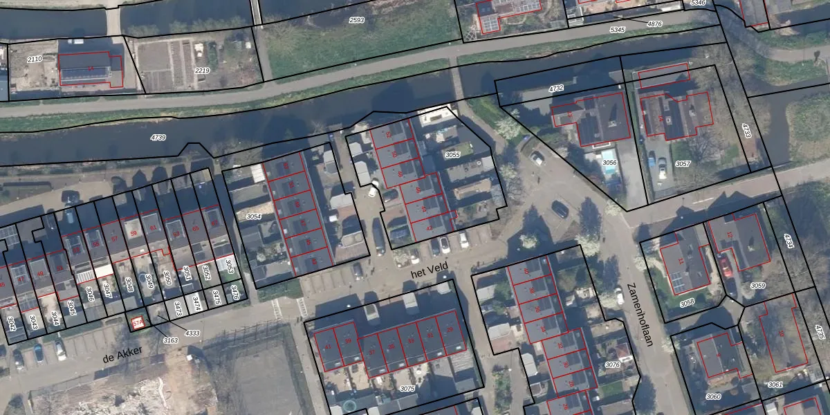 Het perceel waarop het Veld 44 staat heeft een oppervlakte van 854 m². Dit is een groot perceel. De perceeloppervlakte wordt geregistreerd door het Kadaster. Gedetailleerde informatie over de maten van dit perceel kunt u vinden in het rapport Kadastrale kaart met maatvoering van het Veld 44.