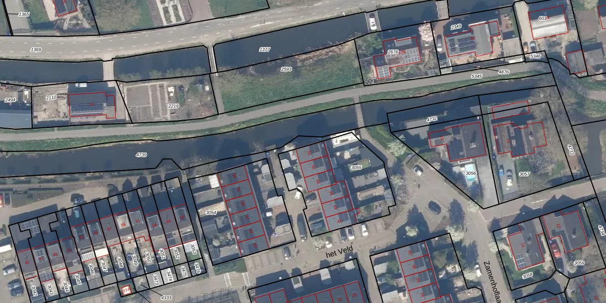 Het perceel waarop het Veld 52 staat heeft een oppervlakte van 854 m². Dit is een groot perceel. De perceeloppervlakte wordt geregistreerd door het Kadaster. Gedetailleerde informatie over de maten van dit perceel kunt u vinden in het rapport Kadastrale kaart met maatvoering van het Veld 52.