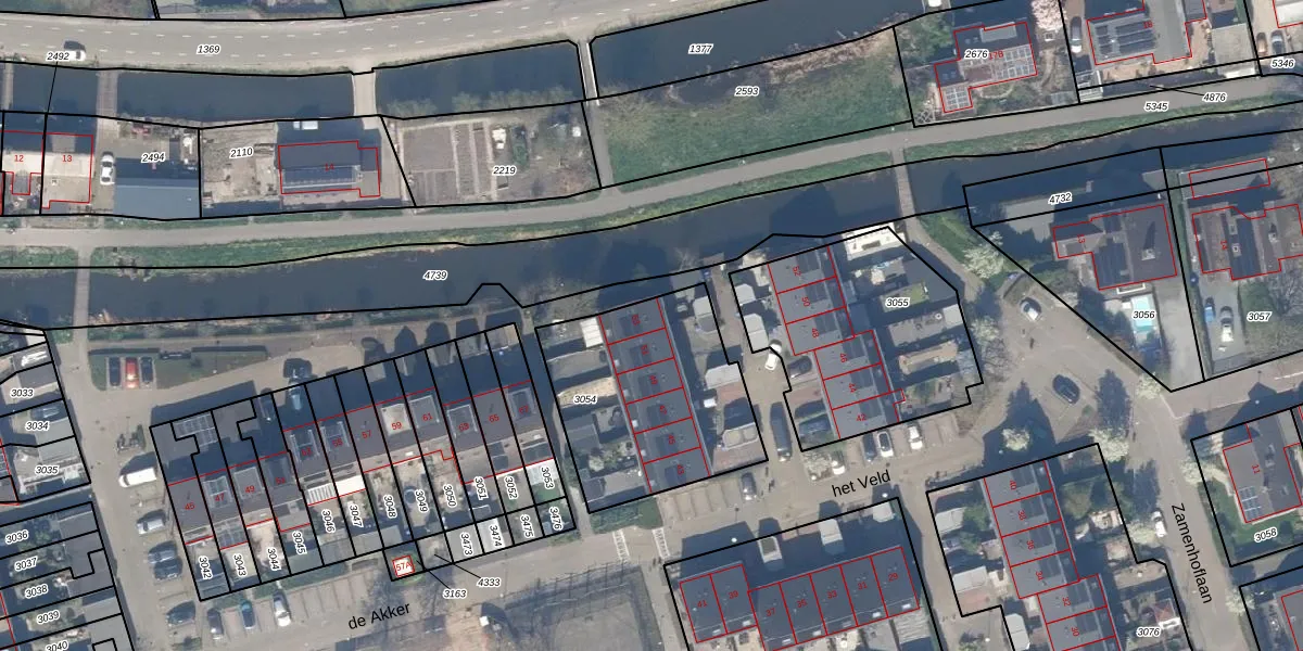 Het perceel waarop het Veld 53 staat heeft een oppervlakte van 823 m². Dit is een groot perceel. De perceeloppervlakte wordt geregistreerd door het Kadaster. Gedetailleerde informatie over de maten van dit perceel kunt u vinden in het rapport Kadastrale kaart met maatvoering van het Veld 53.