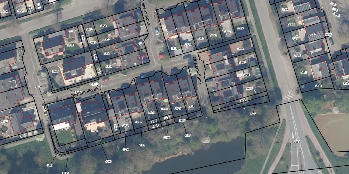 Oosterhoffpark 13 is gelegen op kadastraal perceel JVD00B2913. Deze kadastrale aanduiding is uniek en wordt gebruikt door het Kadaster om eigendomsrechten en andere zakelijke rechten vast te leggen. Het perceel maakt onderdeel uit van de kadastrale gemeente Jaarsveld.