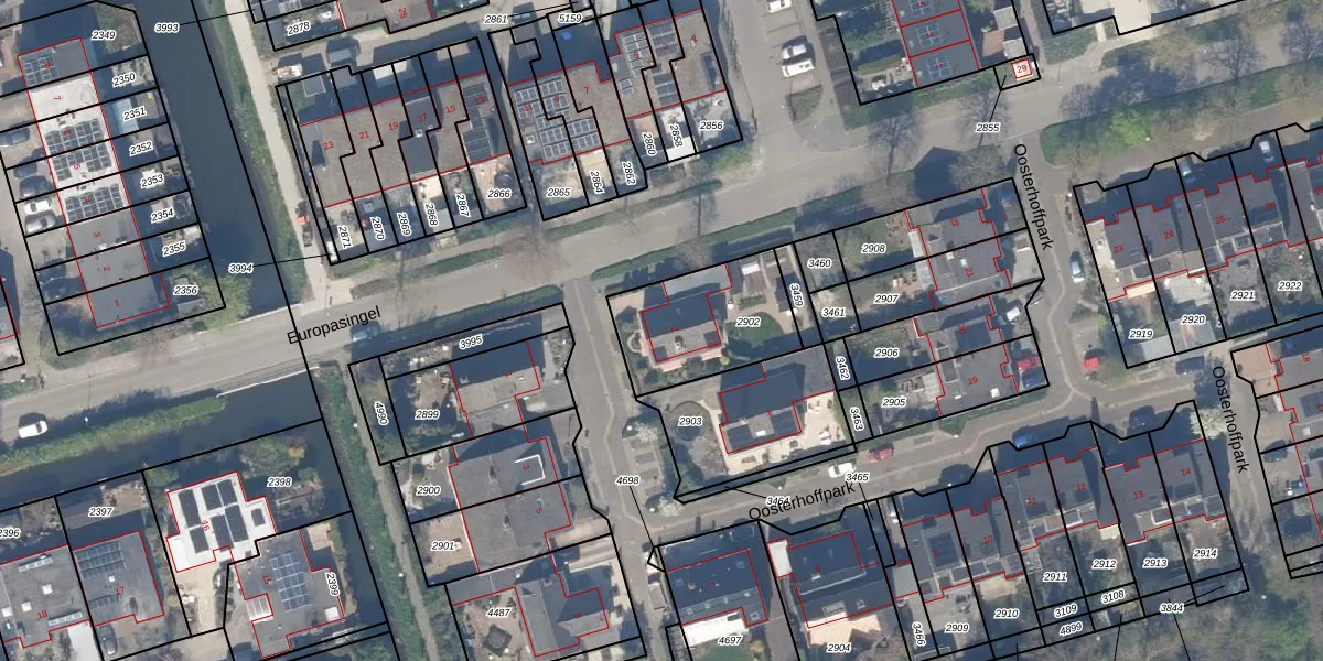 Oosterhoffpark 2 is gelegen op kadastraal perceel JVD00B2902. Deze kadastrale aanduiding is uniek en wordt gebruikt door het Kadaster om eigendomsrechten en andere zakelijke rechten vast te leggen. Het perceel maakt onderdeel uit van de kadastrale gemeente Jaarsveld.