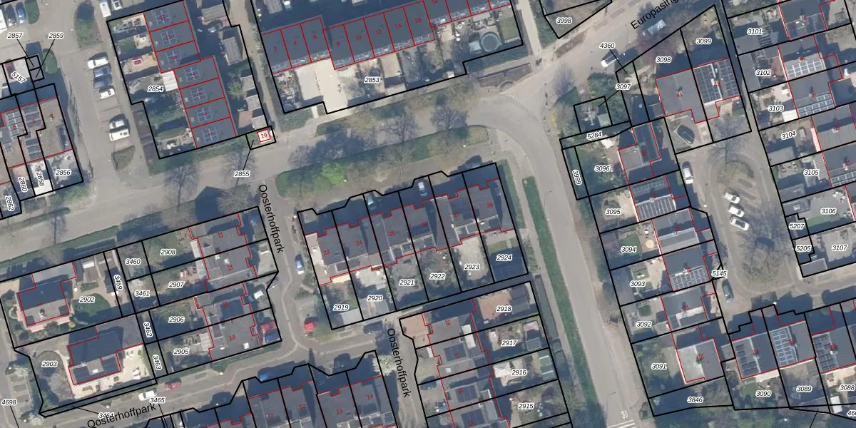 Oosterhoffpark 26 is gelegen op kadastraal perceel JVD00B2922. Deze kadastrale aanduiding is uniek en wordt gebruikt door het Kadaster om eigendomsrechten en andere zakelijke rechten vast te leggen. Het perceel maakt onderdeel uit van de kadastrale gemeente Jaarsveld.