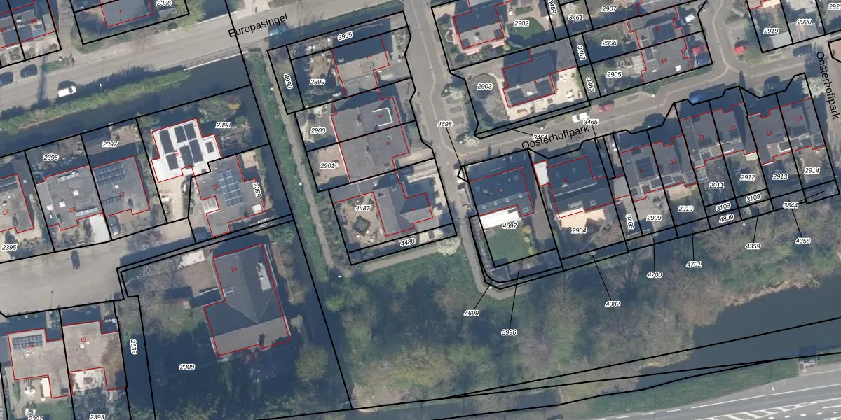 Oosterhoffpark 6 is gelegen op kadastraal perceel JVD00B4487. Deze kadastrale aanduiding is uniek en wordt gebruikt door het Kadaster om eigendomsrechten en andere zakelijke rechten vast te leggen. Het perceel maakt onderdeel uit van de kadastrale gemeente Jaarsveld.