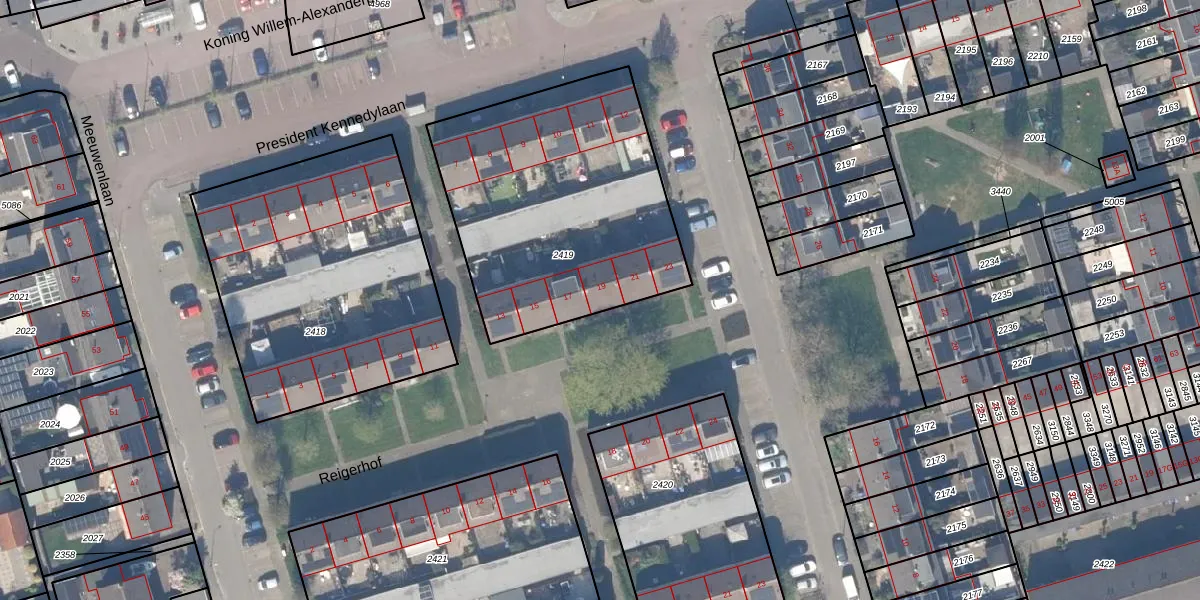 Reigerhof 19 is gelegen op kadastraal perceel JVD00B2419. Deze kadastrale aanduiding is uniek en wordt gebruikt door het Kadaster om eigendomsrechten en andere zakelijke rechten vast te leggen. Het perceel maakt onderdeel uit van de kadastrale gemeente Jaarsveld.