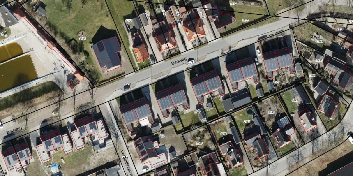 Het perceel waarop Badweg 13 staat heeft een oppervlakte van 4012 m². Dit is een zeer groot perceel. De perceeloppervlakte wordt geregistreerd door het Kadaster. Gedetailleerde informatie over de maten van dit perceel kunt u vinden in het rapport Kadastrale kaart met maatvoering van Badweg 13.