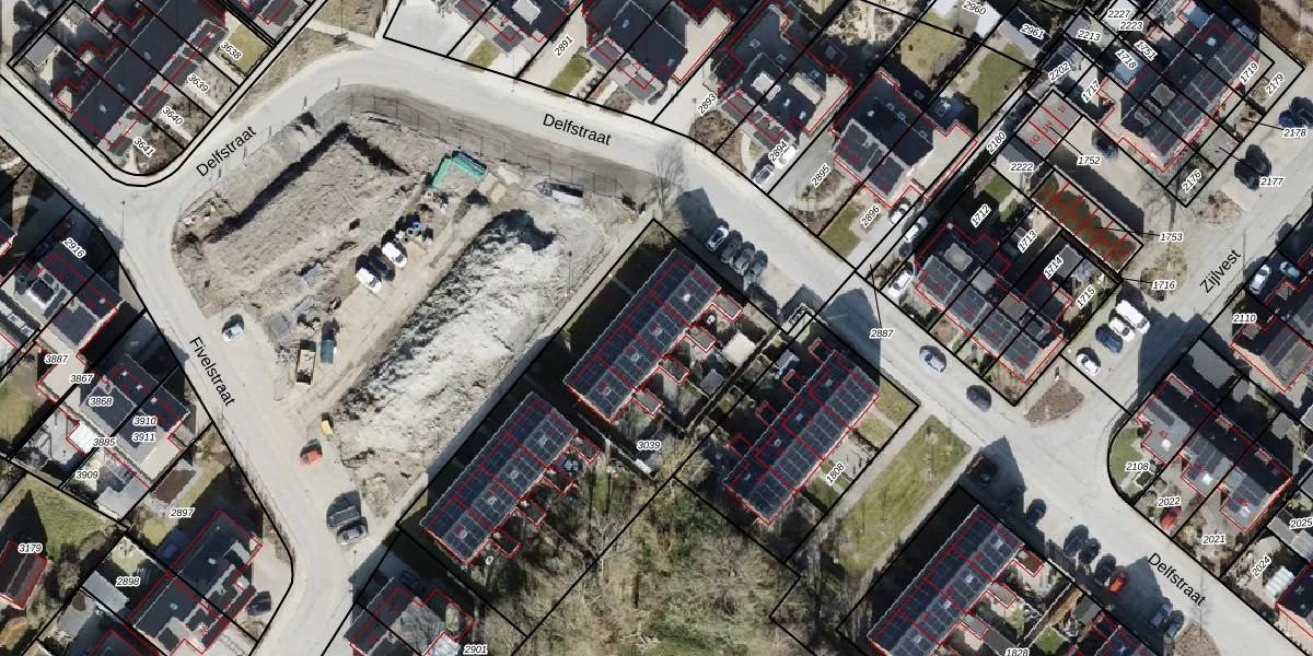 Het perceel waarop Delfstraat 6 staat heeft een oppervlakte van 1640 m². Dit is een zeer groot perceel. De perceeloppervlakte wordt geregistreerd door het Kadaster. Gedetailleerde informatie over de maten van dit perceel kunt u vinden in het rapport Kadastrale kaart met maatvoering van Delfstraat 6.