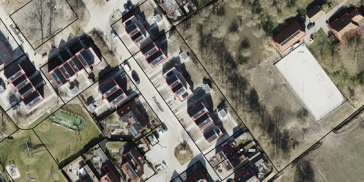 Fruitlaan 25 is gelegen op kadastraal perceel LPS00A2098. Deze kadastrale aanduiding is uniek en wordt gebruikt door het Kadaster om eigendomsrechten en andere zakelijke rechten vast te leggen. Het perceel maakt onderdeel uit van de kadastrale gemeente Loppersum.