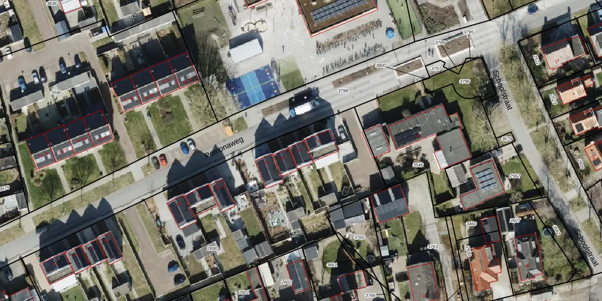 Het perceel waarop Pomonaweg 33 staat heeft een oppervlakte van 3985 m². Dit is een zeer groot perceel. De perceeloppervlakte wordt geregistreerd door het Kadaster. Gedetailleerde informatie over de maten van dit perceel kunt u vinden in het rapport Kadastrale kaart met maatvoering van Pomonaweg 33.