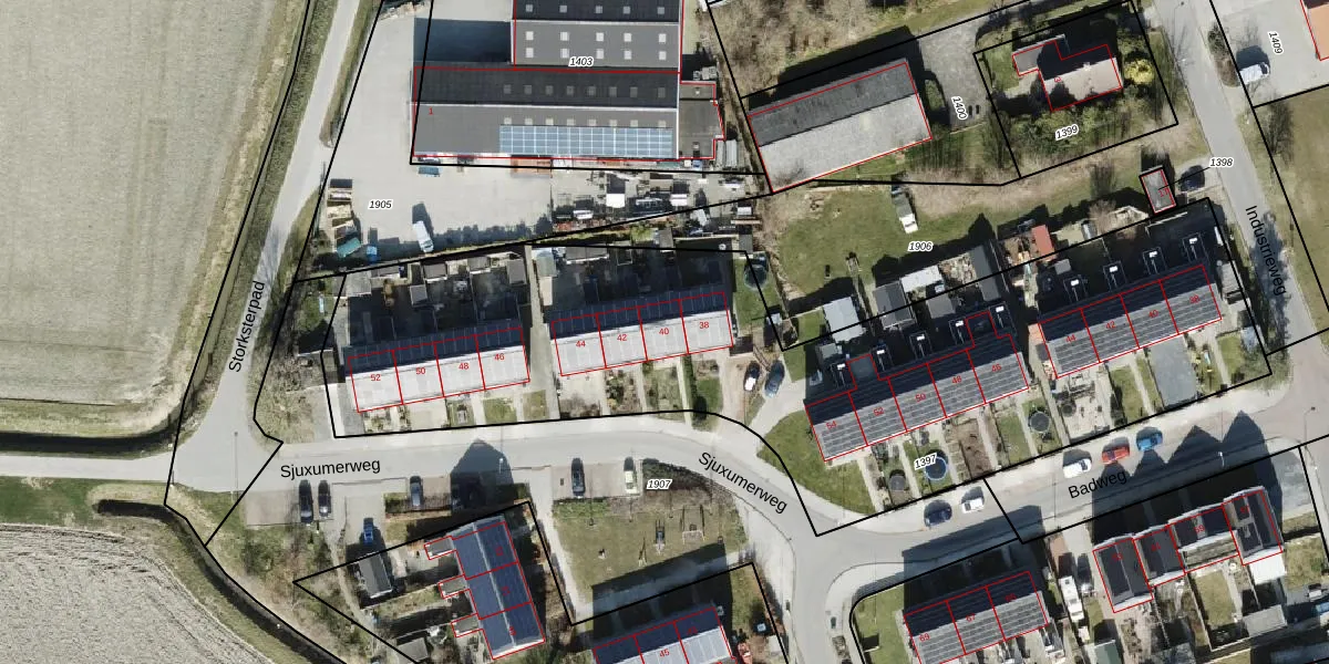 Het perceel waarop Sjuxumerweg 40 staat heeft een oppervlakte van 3715 m². Dit is een zeer groot perceel. De perceeloppervlakte wordt geregistreerd door het Kadaster. Gedetailleerde informatie over de maten van dit perceel kunt u vinden in het rapport Kadastrale kaart met maatvoering van Sjuxumerweg 40.