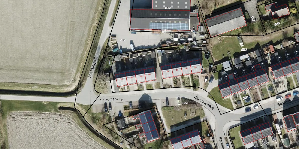Het perceel waarop Sjuxumerweg 46 staat heeft een oppervlakte van 3715 m². Dit is een zeer groot perceel. De perceeloppervlakte wordt geregistreerd door het Kadaster. Gedetailleerde informatie over de maten van dit perceel kunt u vinden in het rapport Kadastrale kaart met maatvoering van Sjuxumerweg 46.