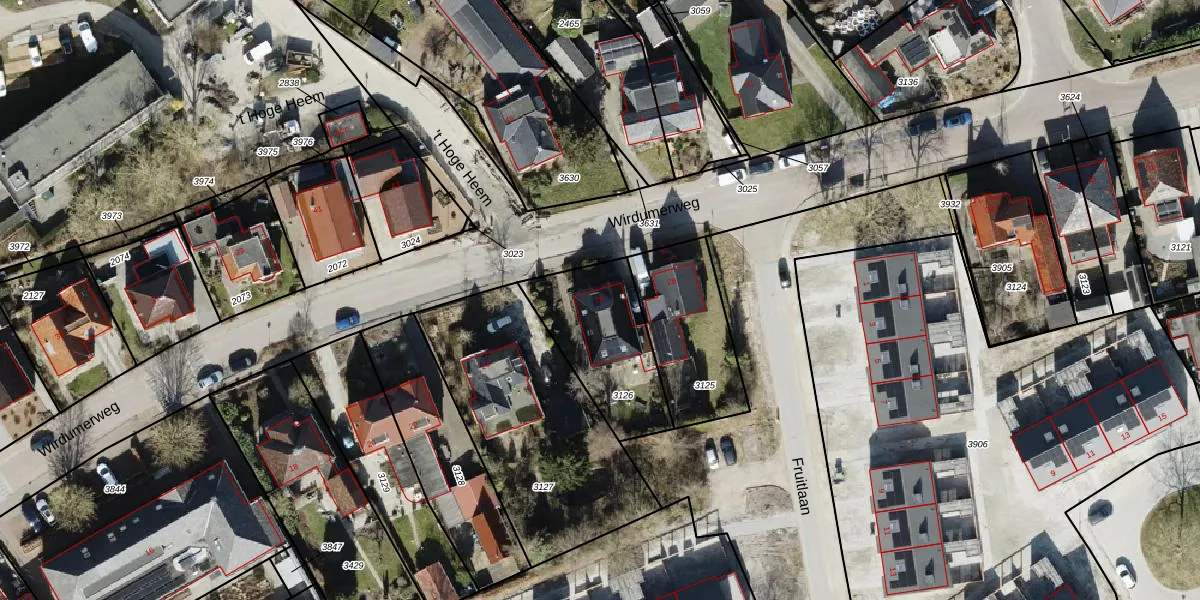 Gebruik de zoekbalk of klik op een perceel voor informatie over de adressen binnen dit perceel.