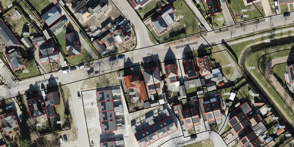 Gebruik de zoekbalk of klik op een perceel voor informatie over de adressen binnen dit perceel.