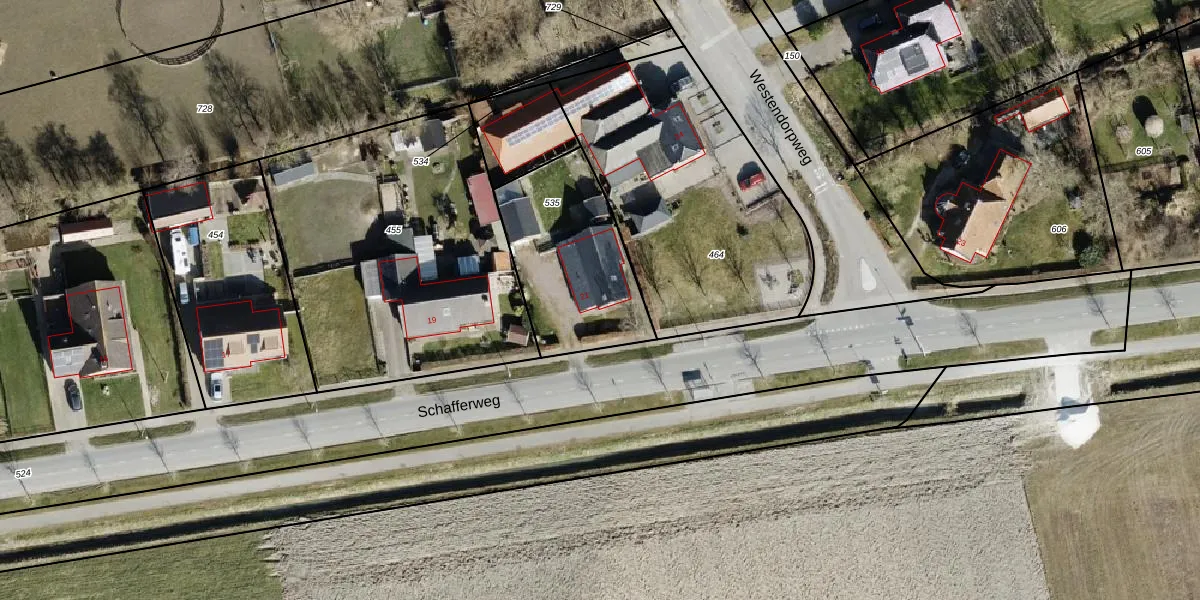 Het perceel waarop Schafferweg 21 staat heeft een oppervlakte van 605 m². Dit is een groot perceel. De perceeloppervlakte wordt geregistreerd door het Kadaster. Gedetailleerde informatie over de maten van dit perceel kunt u vinden in het rapport Kadastrale kaart met maatvoering van Schafferweg 21.