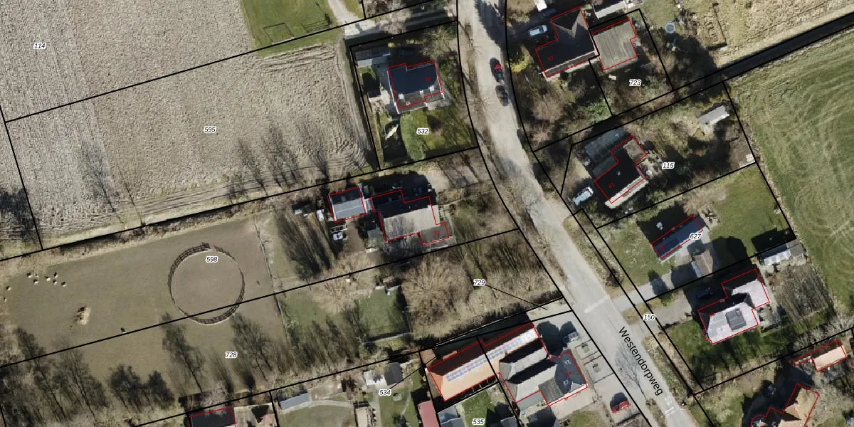 Het perceel waarop Westendorpweg 32 staat heeft een oppervlakte van 2730 m². Dit is een zeer groot perceel. De perceeloppervlakte wordt geregistreerd door het Kadaster. Gedetailleerde informatie over de maten van dit perceel kunt u vinden in het rapport Kadastrale kaart met maatvoering van Westendorpweg 32.