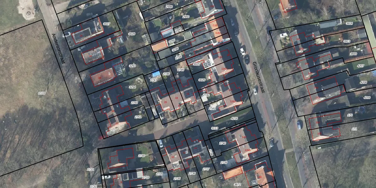 Het perceel waarop Andersonstraat 16 staat heeft een oppervlakte van 252 m². Dit is een middelgroot perceel. De perceeloppervlakte wordt geregistreerd door het Kadaster. Gedetailleerde informatie over de maten van dit perceel kunt u vinden in het rapport Kadastrale kaart met maatvoering van Andersonstraat 16.