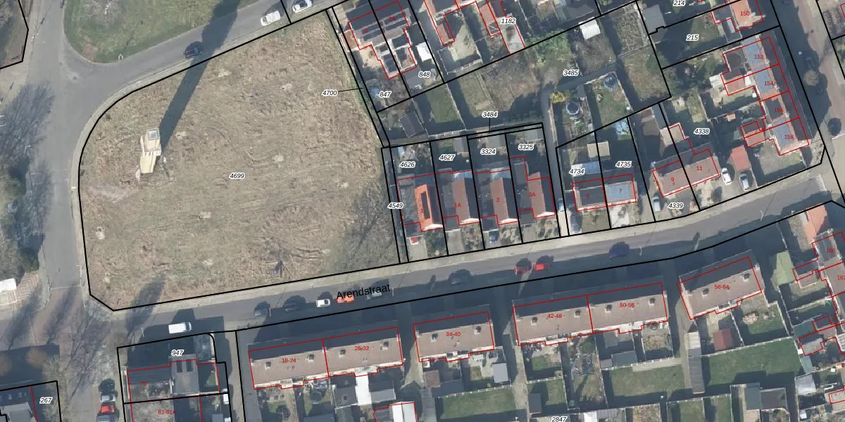 Het perceel waarop Arendstraat 1 staat heeft een oppervlakte van 260 m². Dit is een middelgroot perceel. De perceeloppervlakte wordt geregistreerd door het Kadaster. Gedetailleerde informatie over de maten van dit perceel kunt u vinden in het rapport Kadastrale kaart met maatvoering van Arendstraat 1.