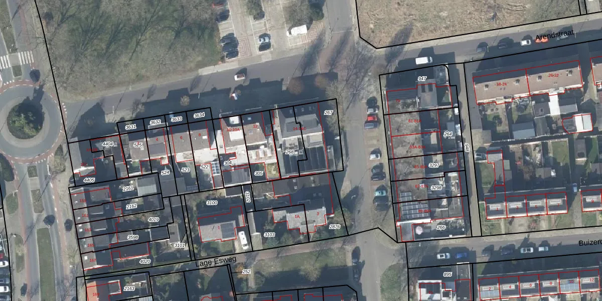 Het perceel waarop Arendstraat 14-C staat heeft een oppervlakte van 200 m². Dit is een middelgroot perceel. De perceeloppervlakte wordt geregistreerd door het Kadaster. Gedetailleerde informatie over de maten van dit perceel kunt u vinden in het rapport Kadastrale kaart met maatvoering van Arendstraat 14-C.