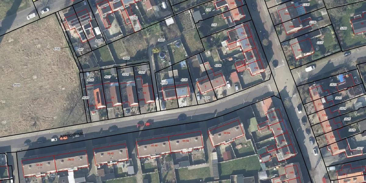 Arendstraat 7 is gelegen op kadastraal perceel LSR00N4735. Deze kadastrale aanduiding is uniek en wordt gebruikt door het Kadaster om eigendomsrechten en andere zakelijke rechten vast te leggen. Het perceel maakt onderdeel uit van de kadastrale gemeente Losser.