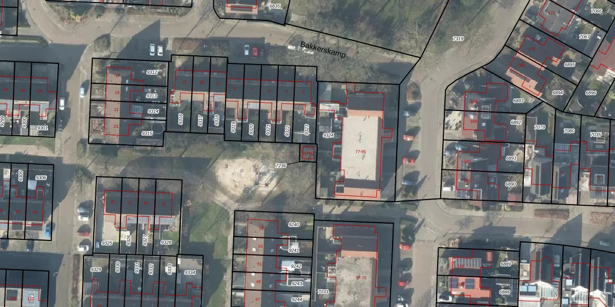 Het perceel waarop Bakkerskamp 1-TR staat heeft een oppervlakte van 34 m². Dit is een klein perceel. De perceeloppervlakte wordt geregistreerd door het Kadaster. Gedetailleerde informatie over de maten van dit perceel kunt u vinden in het rapport Kadastrale kaart met maatvoering van Bakkerskamp 1-TR.