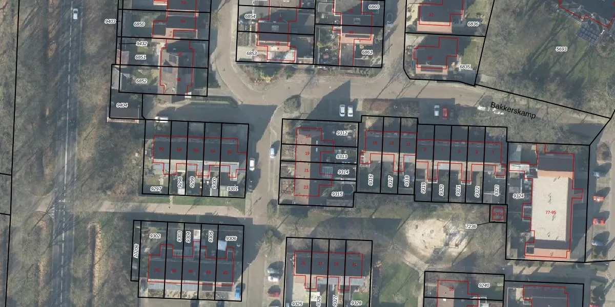 Bakkerskamp 19 is gelegen op kadastraal perceel LSR00H9313. Deze kadastrale aanduiding is uniek en wordt gebruikt door het Kadaster om eigendomsrechten en andere zakelijke rechten vast te leggen. Het perceel maakt onderdeel uit van de kadastrale gemeente Losser.