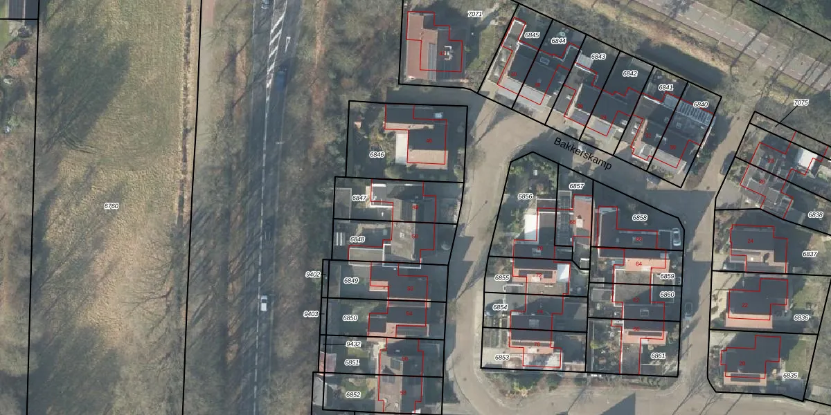 Het perceel waarop Bakkerskamp 48 staat heeft een oppervlakte van 306 m². Dit is een groot perceel. De perceeloppervlakte wordt geregistreerd door het Kadaster. Gedetailleerde informatie over de maten van dit perceel kunt u vinden in het rapport Kadastrale kaart met maatvoering van Bakkerskamp 48.