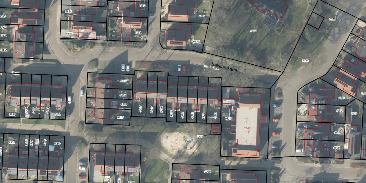 Bakkerskamp 7 is gelegen op kadastraal perceel LSR00H9320. Deze kadastrale aanduiding is uniek en wordt gebruikt door het Kadaster om eigendomsrechten en andere zakelijke rechten vast te leggen. Het perceel maakt onderdeel uit van de kadastrale gemeente Losser.