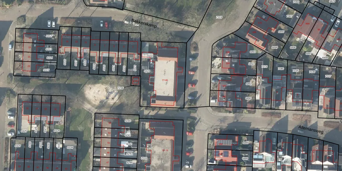 Het perceel waarop Bakkerskamp 81 staat heeft een oppervlakte van 1006 m². Dit is een zeer groot perceel. De perceeloppervlakte wordt geregistreerd door het Kadaster. Gedetailleerde informatie over de maten van dit perceel kunt u vinden in het rapport Kadastrale kaart met maatvoering van Bakkerskamp 81.