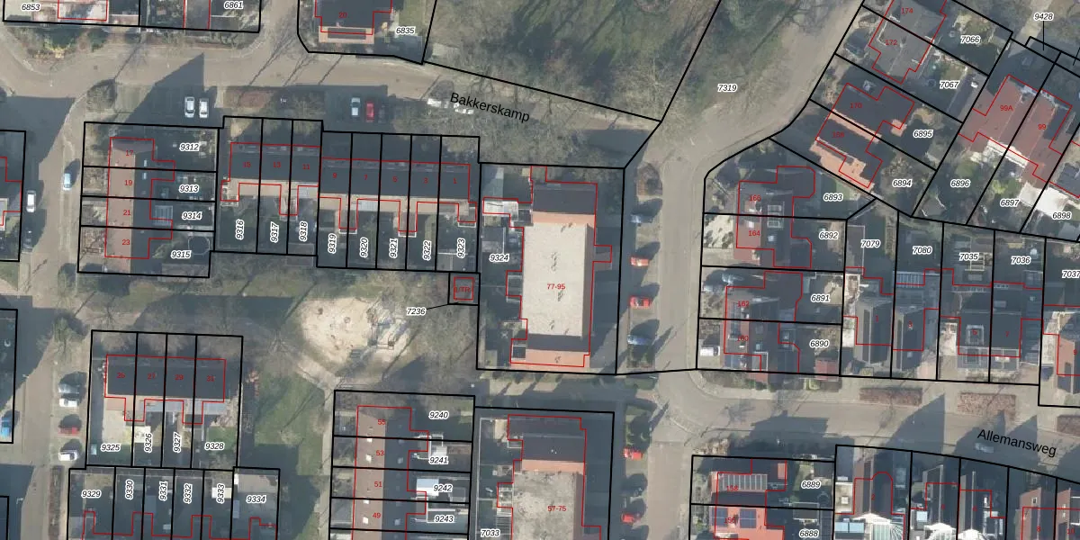 Het perceel waarop Bakkerskamp 87 staat heeft een oppervlakte van 1006 m². Dit is een zeer groot perceel. De perceeloppervlakte wordt geregistreerd door het Kadaster. Gedetailleerde informatie over de maten van dit perceel kunt u vinden in het rapport Kadastrale kaart met maatvoering van Bakkerskamp 87.