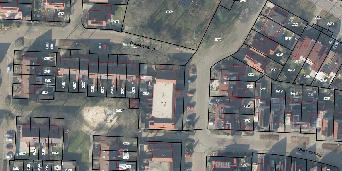 Het perceel waarop Bakkerskamp 89 staat heeft een oppervlakte van 1006 m². Dit is een zeer groot perceel. De perceeloppervlakte wordt geregistreerd door het Kadaster. Gedetailleerde informatie over de maten van dit perceel kunt u vinden in het rapport Kadastrale kaart met maatvoering van Bakkerskamp 89.
