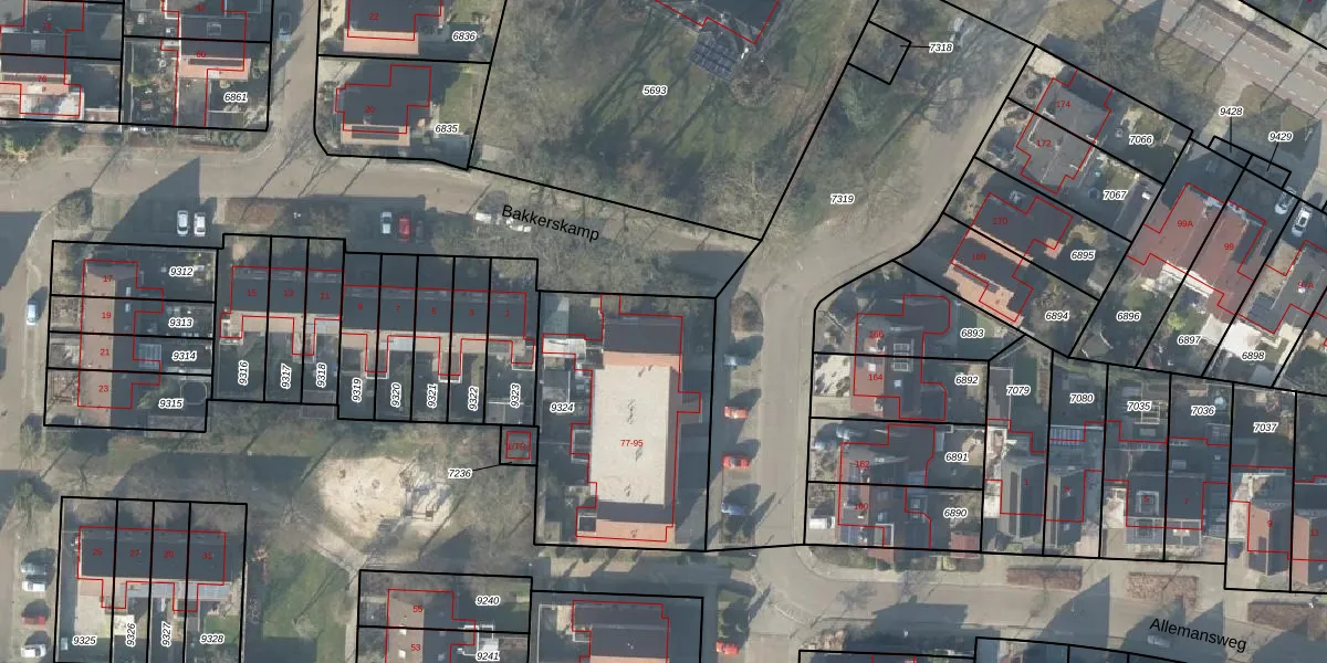 Het perceel waarop Bakkerskamp 93 staat heeft een oppervlakte van 1006 m². Dit is een zeer groot perceel. De perceeloppervlakte wordt geregistreerd door het Kadaster. Gedetailleerde informatie over de maten van dit perceel kunt u vinden in het rapport Kadastrale kaart met maatvoering van Bakkerskamp 93.