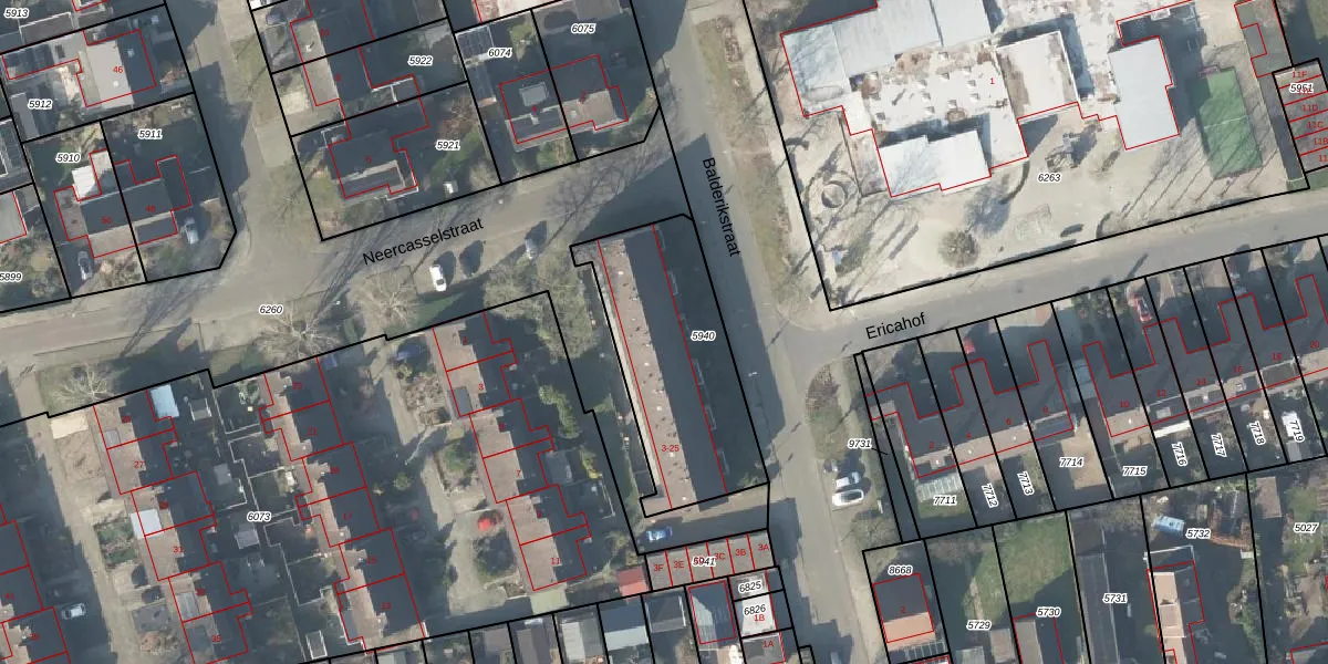Het perceel waarop Balderikstraat 9 staat heeft een oppervlakte van 716 m². Dit is een groot perceel. De perceeloppervlakte wordt geregistreerd door het Kadaster. Gedetailleerde informatie over de maten van dit perceel kunt u vinden in het rapport Kadastrale kaart met maatvoering van Balderikstraat 9.