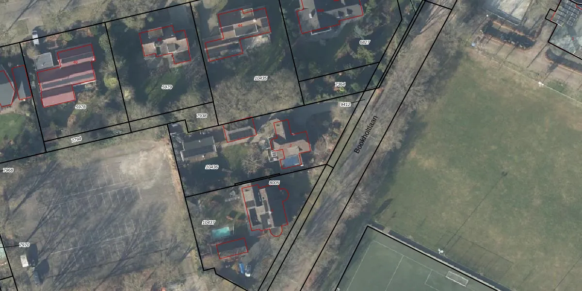 Het perceel waarop Bookholtlaan 2 staat heeft een oppervlakte van 1303 m². Dit is een zeer groot perceel. De perceeloppervlakte wordt geregistreerd door het Kadaster. Gedetailleerde informatie over de maten van dit perceel kunt u vinden in het rapport Kadastrale kaart met maatvoering van Bookholtlaan 2.
