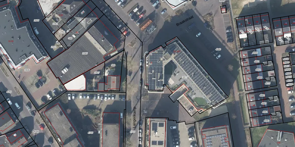 Braakstraat 2-11 is gelegen op kadastraal perceel LSR00N3477. Deze kadastrale aanduiding is uniek en wordt gebruikt door het Kadaster om eigendomsrechten en andere zakelijke rechten vast te leggen. Het perceel maakt onderdeel uit van de kadastrale gemeente Losser.