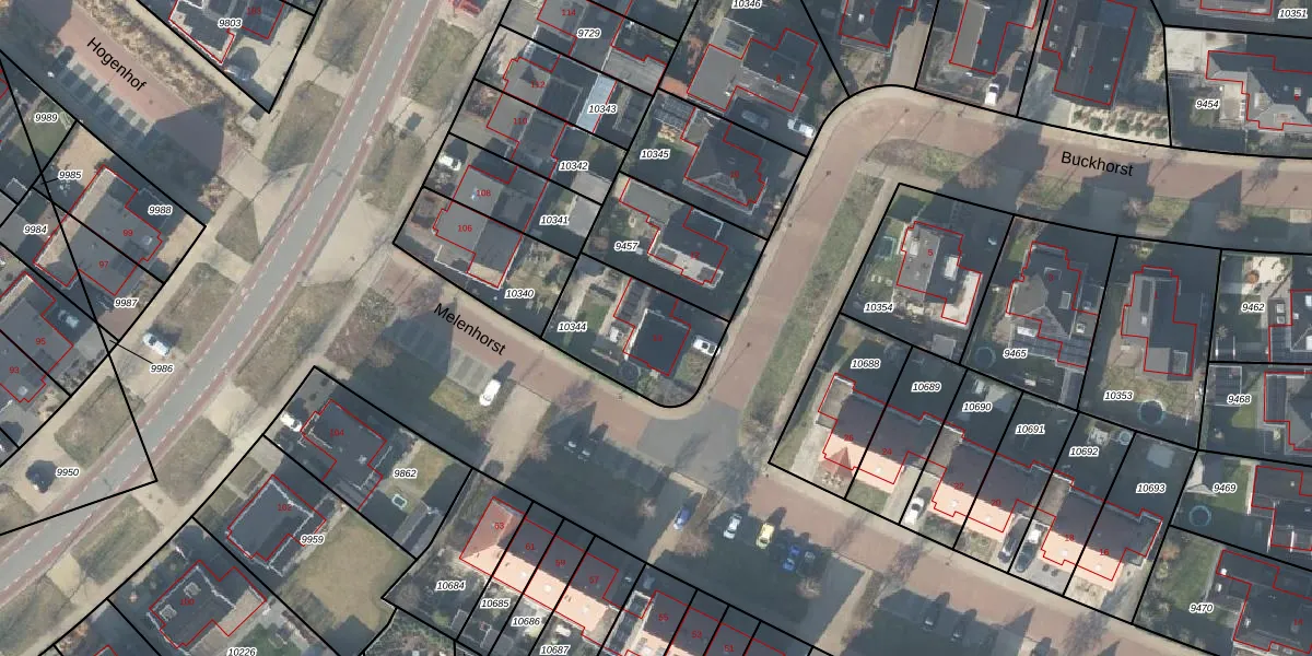 Het perceel waarop Buckhorst 14 staat heeft een oppervlakte van 386 m². Dit is een groot perceel. De perceeloppervlakte wordt geregistreerd door het Kadaster. Gedetailleerde informatie over de maten van dit perceel kunt u vinden in het rapport Kadastrale kaart met maatvoering van Buckhorst 14.