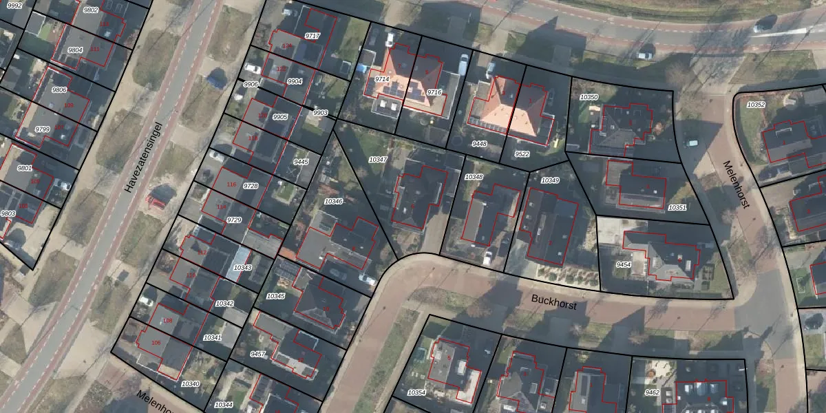 Het perceel waarop Buckhorst 6 staat heeft een oppervlakte van 616 m². Dit is een groot perceel. De perceeloppervlakte wordt geregistreerd door het Kadaster. Gedetailleerde informatie over de maten van dit perceel kunt u vinden in het rapport Kadastrale kaart met maatvoering van Buckhorst 6.