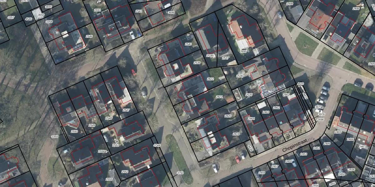 Het perceel waarop Chopinstraat 16 staat heeft een oppervlakte van 345 m². Dit is een groot perceel. De perceeloppervlakte wordt geregistreerd door het Kadaster. Gedetailleerde informatie over de maten van dit perceel kunt u vinden in het rapport Kadastrale kaart met maatvoering van Chopinstraat 16.