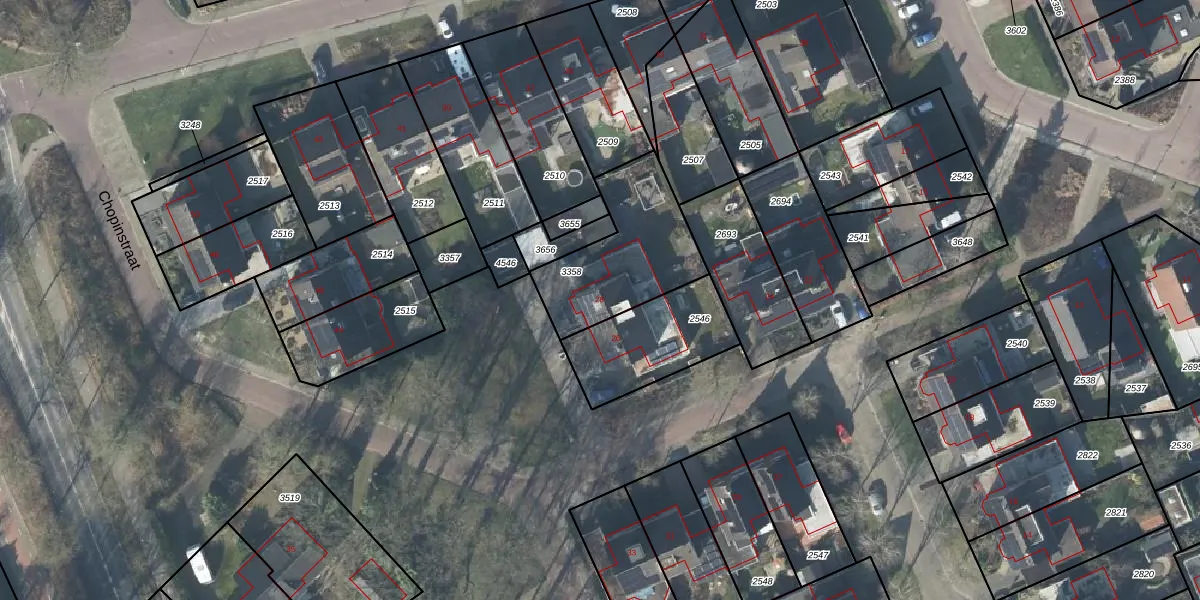 Het perceel waarop Chopinstraat 28 staat heeft een oppervlakte van 449 m². Dit is een groot perceel. De perceeloppervlakte wordt geregistreerd door het Kadaster. Gedetailleerde informatie over de maten van dit perceel kunt u vinden in het rapport Kadastrale kaart met maatvoering van Chopinstraat 28.