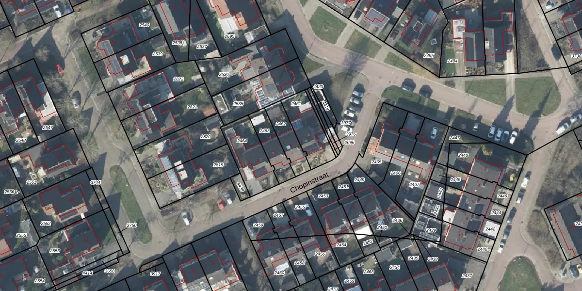 Chopinstraat 4 is gelegen op kadastraal perceel LSR00N2462. Deze kadastrale aanduiding is uniek en wordt gebruikt door het Kadaster om eigendomsrechten en andere zakelijke rechten vast te leggen. Het perceel maakt onderdeel uit van de kadastrale gemeente Losser.