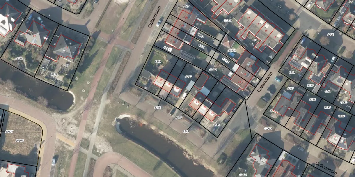 Het perceel waarop Collendoorn 26 staat heeft een oppervlakte van 245 m². Dit is een middelgroot perceel. De perceeloppervlakte wordt geregistreerd door het Kadaster. Gedetailleerde informatie over de maten van dit perceel kunt u vinden in het rapport Kadastrale kaart met maatvoering van Collendoorn 26.