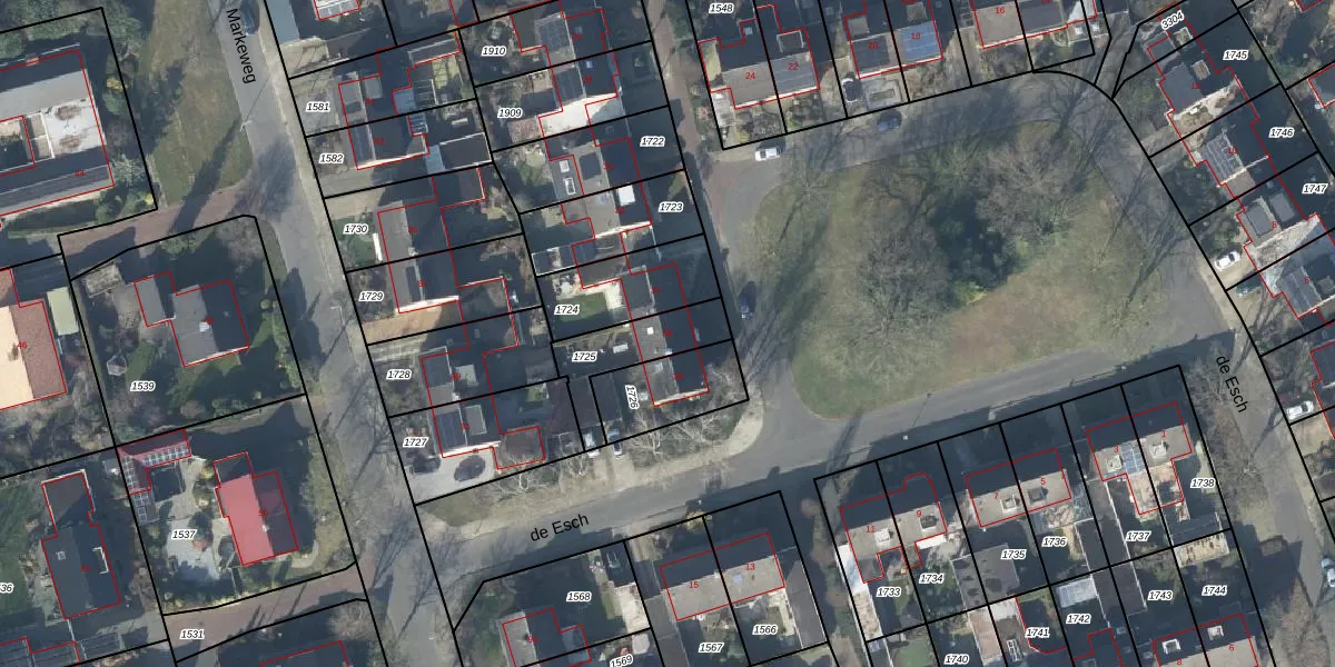 Het perceel waarop de Esch 36 staat heeft een oppervlakte van 208 m². Dit is een middelgroot perceel. De perceeloppervlakte wordt geregistreerd door het Kadaster. Gedetailleerde informatie over de maten van dit perceel kunt u vinden in het rapport Kadastrale kaart met maatvoering van de Esch 36.