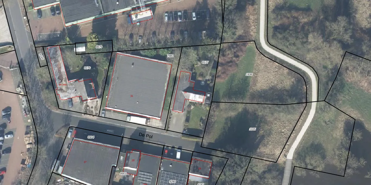 Het perceel waarop De Pol 30 staat heeft een oppervlakte van 1045 m². Dit is een zeer groot perceel. De perceeloppervlakte wordt geregistreerd door het Kadaster. Gedetailleerde informatie over de maten van dit perceel kunt u vinden in het rapport Kadastrale kaart met maatvoering van De Pol 30.