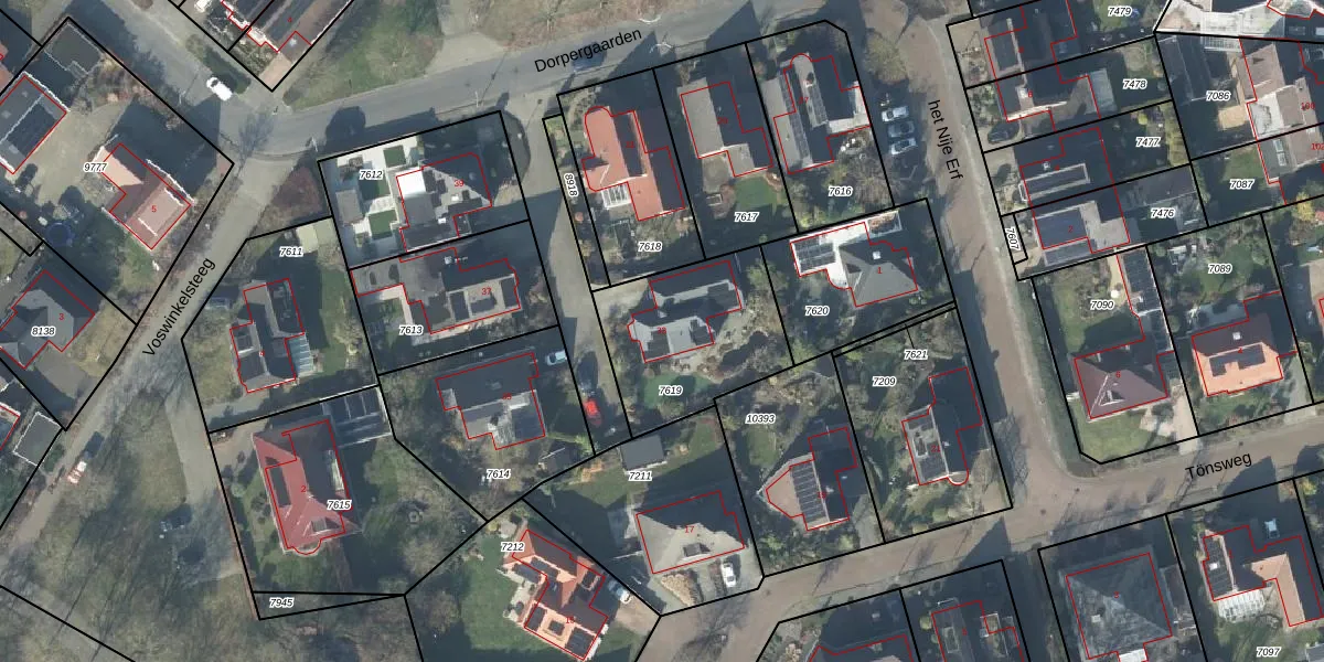 Het perceel waarop Dorpergaarden 33 staat heeft een oppervlakte van 559 m². Dit is een groot perceel. De perceeloppervlakte wordt geregistreerd door het Kadaster. Gedetailleerde informatie over de maten van dit perceel kunt u vinden in het rapport Kadastrale kaart met maatvoering van Dorpergaarden 33.