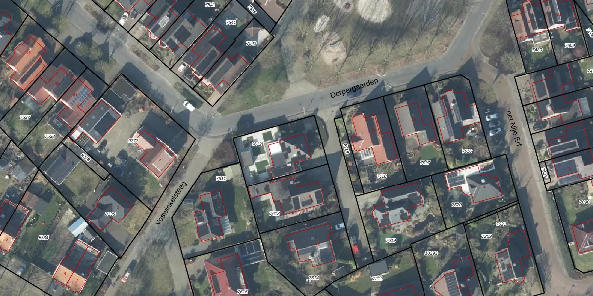 Het perceel waarop Dorpergaarden 39 staat heeft een oppervlakte van 484 m². Dit is een groot perceel. De perceeloppervlakte wordt geregistreerd door het Kadaster. Gedetailleerde informatie over de maten van dit perceel kunt u vinden in het rapport Kadastrale kaart met maatvoering van Dorpergaarden 39.