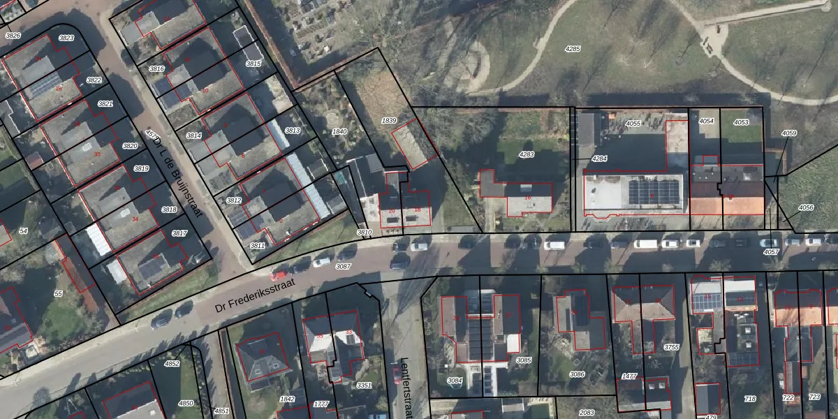 Het perceel waarop Dr Frederiksstraat 18 staat heeft een oppervlakte van 594 m². Dit is een groot perceel. De perceeloppervlakte wordt geregistreerd door het Kadaster. Gedetailleerde informatie over de maten van dit perceel kunt u vinden in het rapport Kadastrale kaart met maatvoering van Dr Frederiksstraat 18.