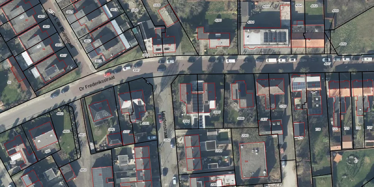 Het perceel waarop Dr Frederiksstraat 29 staat heeft een oppervlakte van 387 m². Dit is een groot perceel. De perceeloppervlakte wordt geregistreerd door het Kadaster. Gedetailleerde informatie over de maten van dit perceel kunt u vinden in het rapport Kadastrale kaart met maatvoering van Dr Frederiksstraat 29.