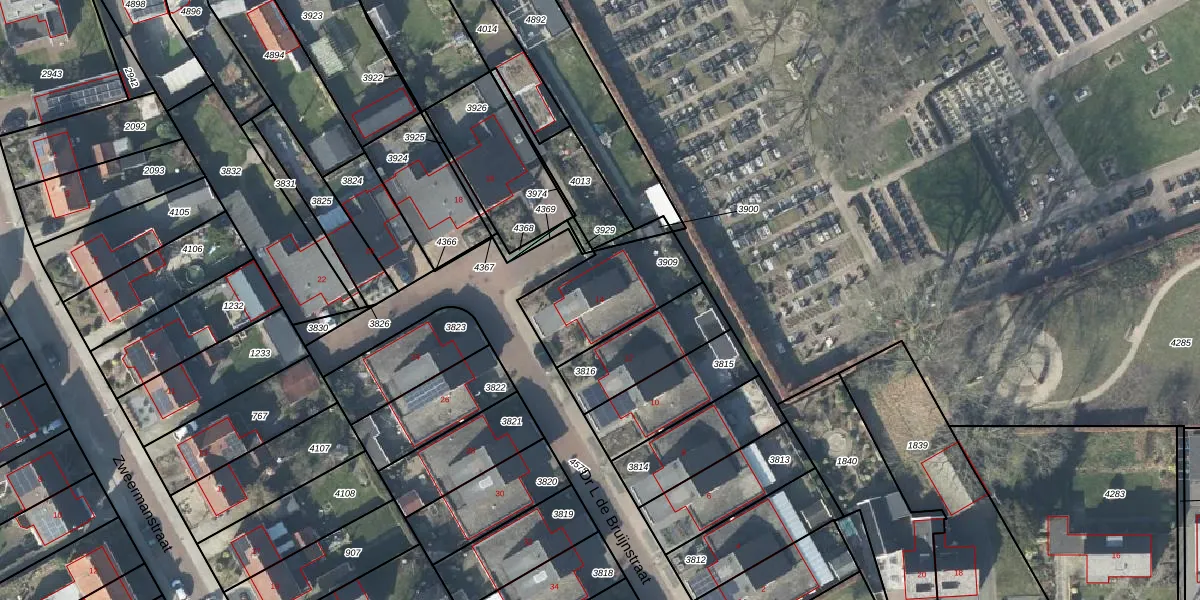 Het perceel waarop Dr L de Bruijnstraat 14 staat heeft een oppervlakte van 355 m². Dit is een groot perceel. De perceeloppervlakte wordt geregistreerd door het Kadaster. Gedetailleerde informatie over de maten van dit perceel kunt u vinden in het rapport Kadastrale kaart met maatvoering van Dr L de Bruijnstraat 14.