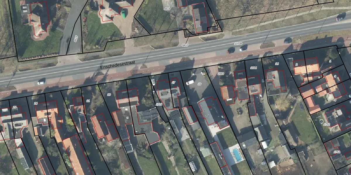 Het perceel waarop Enschedesestraat 51 staat heeft een oppervlakte van 610 m². Dit is een groot perceel. De perceeloppervlakte wordt geregistreerd door het Kadaster. Gedetailleerde informatie over de maten van dit perceel kunt u vinden in het rapport Kadastrale kaart met maatvoering van Enschedesestraat 51.
