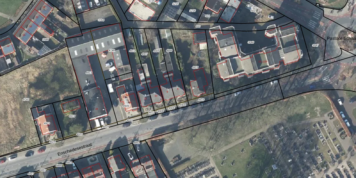 Het perceel waarop Enschedesestraat 6 staat heeft een oppervlakte van 298 m². Dit is een middelgroot perceel. De perceeloppervlakte wordt geregistreerd door het Kadaster. Gedetailleerde informatie over de maten van dit perceel kunt u vinden in het rapport Kadastrale kaart met maatvoering van Enschedesestraat 6.